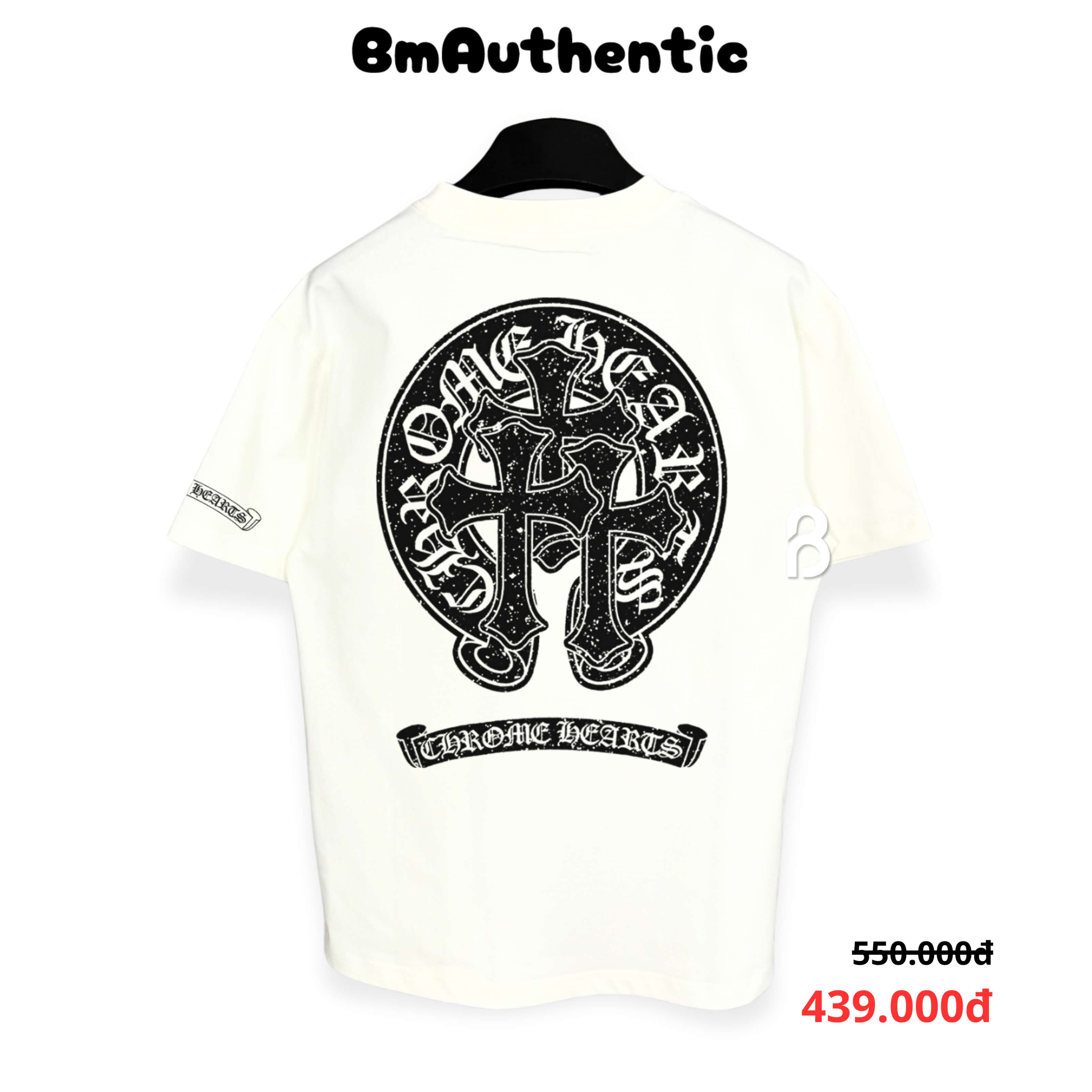 THÔNG TIN SẢN PHẨM - CHẤT LIỆU – Cotton cao cấp, thoáng mát, mềm mại, co giãn tốt, giữ form chuẩn – THIẾT KẾ – Mặt trước in logo Chrome Hearts phối biểu tượng dây móc khóa và huy hiệu độc đáo, tay áo in chữ Chrome. Mặt sau nổi bật với hoạ tiết 2 thánh giá lớn lồng ghép trong vòng tròn phong cách Gothic, cá tính mạnh mẽ – KIỂU DÁNG – Form rộng thời trang unisex, phù hợp cho cả nam và nữ, dễ phối đồ theo phong cách đường phố.