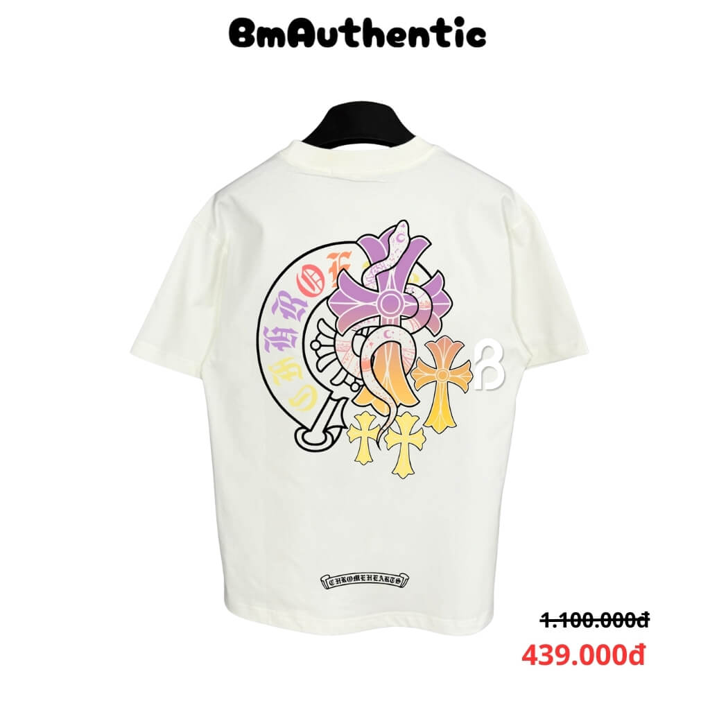 THÔNG TIN SẢN PHẨM - CHẤT LIỆU – 100% cotton cao cấp, dày dặn, thoáng mát, co giãn nhẹ và thấm hút mồ hôi tốt, mang đến cảm giác thoải mái tối đa cho người mặc. – THIẾT KẾ – Họa tiết rắn quấn quanh thánh giá phối màu tím – cam – vàng nổi bật, kết hợp dòng chữ Chrome Hearts vòng cung phong cách Gothic mạnh mẽ. Logo đặc trưng in sau lưng giúp tổng thể thêm cá tính và đậm chất streetwear. – KIỂU DÁNG – Form rộng unisex hiện đại, dễ phối đồ, phù hợp cho cả nam và nữ. Dòng sản phẩm biểu tượng của phong cách thời trang cao cấp pha nét bụi bặm.