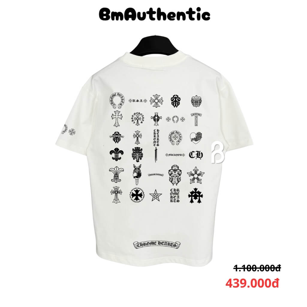 THÔNG TIN SẢN PHẨM - CHẤT LIỆU – Cotton 100% cao cấp, bề mặt vải mềm mịn, thoáng khí, thấm hút tốt và co giãn nhẹ giúp thoải mái khi mặc cả ngày. Vải dày dặn, giữ form chuẩn, không bai nhão, không xù lông sau nhiều lần giặt. – THIẾT KẾ – Mặt trước in logo Chrome Hearts dạng text Gothic kết hợp biểu tượng đặc trưng tinh xảo; mặt sau là bộ sưu tập Multi Icon Chrome Hearts với hàng loạt biểu tượng kinh điển: cross, dagger, fleur… được in sắc nét, nổi bật và cực kỳ độc đáo. Thiết kế đậm chất streetwear cao cấp, phù hợp mọi outfit từ đi chơi, dạo phố đến sự kiện thời trang. – KIỂU DÁNG – Form rộng Unisex thoải mái, phù hợp nhiều dáng người. Dễ phối cùng quần jean, jogger, short hoặc layering, mang lại vẻ cá tính, hiện đại và nổi bật.