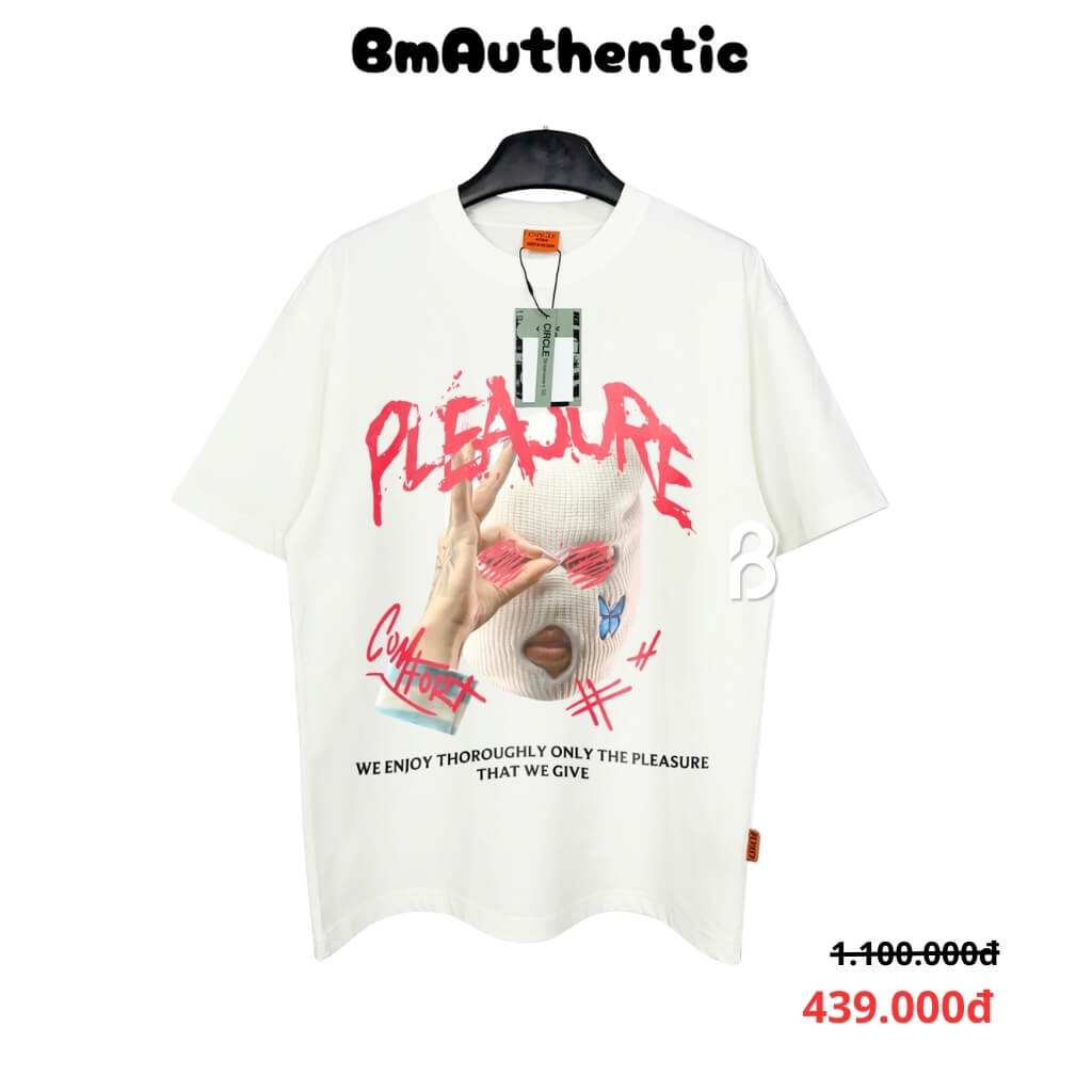 THÔNG TIN SẢN PHẨM - CHẤT LIỆU – 100% cotton cao cấp, dày dặn nhưng thoáng mát, co giãn nhẹ và thấm hút mồ hôi hiệu quả. Bề mặt vải mịn, mềm mại, không xù lông hay bai nhão, mang lại cảm giác thoải mái khi mặc cả ngày. – THIẾT KẾ – Hình in nghệ thuật nổi bật với khuôn mặt đeo mặt nạ trắng cùng dòng chữ “PLEASURE” và “Comfort” đỏ đậm phong cách graffiti phá cách. Đi kèm dòng quote “We enjoy thoroughly only the pleasure that we give” tạo điểm nhấn triết lý và cá tính mạnh mẽ, phù hợp phong cách streetwear hiện đại. Có hai phiên bản: đen cá tính và trắng tinh tế. – KIỂU DÁNG – Form rộng Unisex thời thượng, dễ phối với quần jeans, jogger, hoặc short. Phù hợp cho cả nam và nữ theo phong cách năng động và tự do.