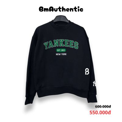 Sweater MLB Yankees Allover Green Logo Cotton Cao Cấp Form Rộng - BM Authentic