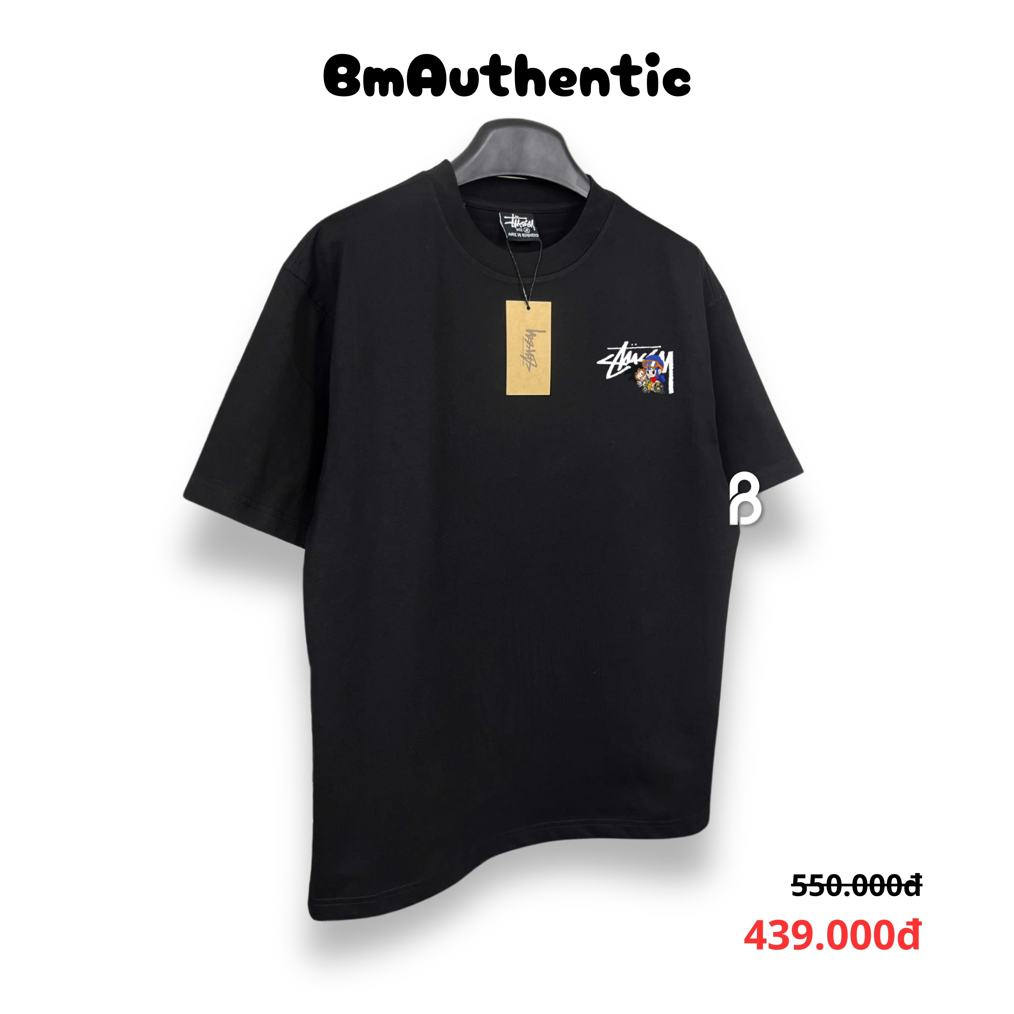 - Thiết kế: Hình in độc đáo với phong cách phiêu lưu, kết hợp nhân vật anime và xe moto cổ điển, tạo nên sự khác biệt đậm chất streetwear. Logo Stussy nổi bật được tích hợp hài hòa trong họa tiết.