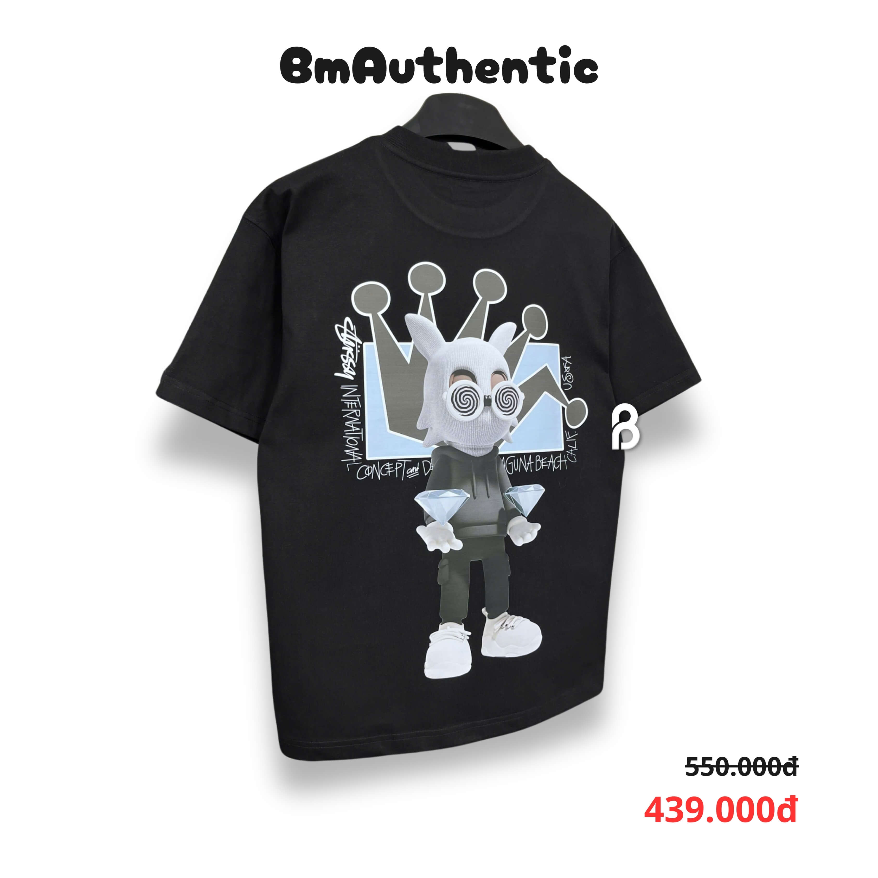 Áo Thun Stussy Mascot Diamond Crown Cotton Cao Cấp Form Rộng - BM Authentic