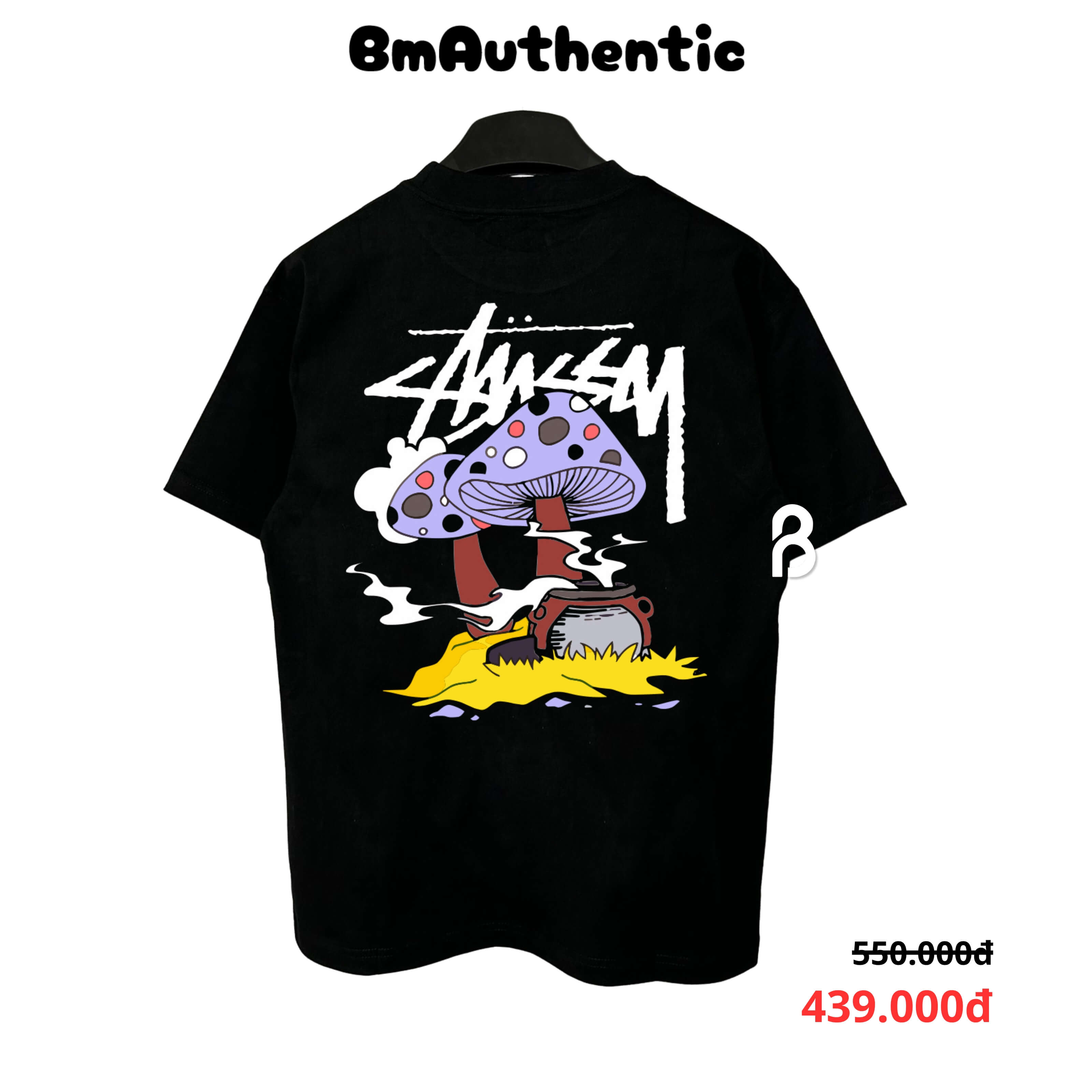 THÔNG TIN SẢN PHẨM - CHẤT LIỆU – 100% cotton cao cấp, bề mặt vải mịn, thoáng khí, co giãn nhẹ, giữ form áo chuẩn sau nhiều lần giặt. – THIẾT KẾ – Mặt trước in logo Stussy tối giản, mặt sau nổi bật với họa tiết “Mushroom Graphic” màu tím và vàng rực rỡ mang phong cách nghệ thuật đường phố độc đáo, tạo điểm nhấn trẻ trung và phá cách. – KIỂU DÁNG – Form rộng unisex thoải mái, phù hợp mọi vóc dáng, dễ phối cùng quần jean, short hoặc phụ kiện thời trang streetwear.