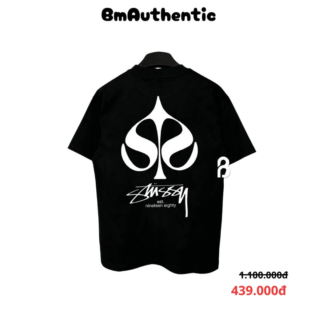 THÔNG TIN SẢN PHẨM - CHẤT LIỆU – 100% cotton cao cấp, dày dặn, thoáng mát, thấm hút tốt, mang lại cảm giác mềm mại và bền màu sau nhiều lần giặt. – THIẾT KẾ – Mặt trước in logo Stussy nhỏ kết hợp họa tiết “Spade Icon” độc đáo; mặt sau là biểu tượng lá bài cách điệu khổ lớn kết hợp chữ ký Stussy cùng dòng “est. nineteen eighty”, mang đậm tinh thần streetwear cổ điển pha hiện đại. Hình in trắng sắc nét trên nền đen tạo độ tương phản mạnh mẽ, dễ phối đồ và nổi bật phong cách cá tính. – KIỂU DÁNG – Form rộng Unisex, phù hợp cả nam và nữ, dễ dàng phối cùng quần jeans, jogger hoặc short để tạo outfit năng động, thời trang.