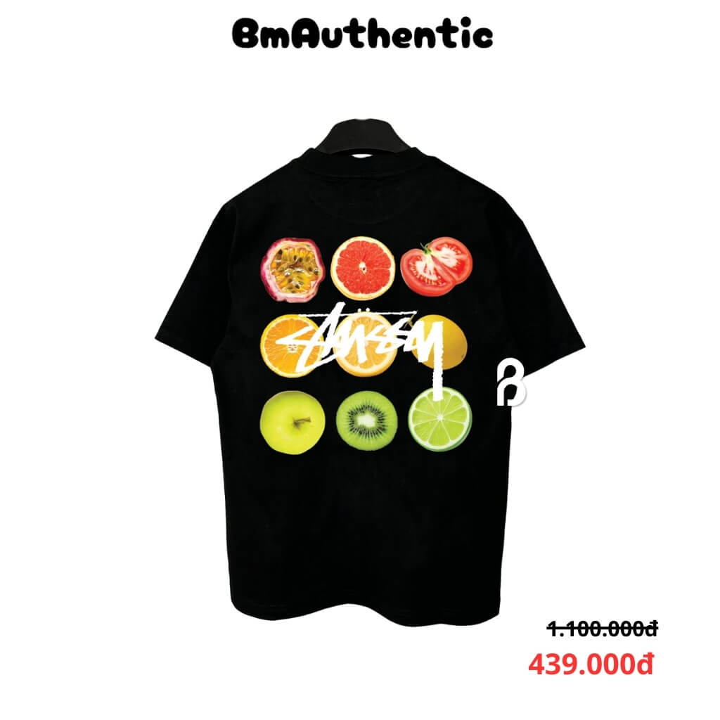 THÔNG TIN SẢN PHẨM - CHẤT LIỆU – 100% cotton cao cấp, mềm mịn, thoáng mát, thấm hút mồ hôi tốt, giữ form chuẩn và bền màu sau nhiều lần giặt. – THIẾT KẾ – Hình in “Stussy Fruit Pop” độc đáo với các lát trái cây nhiệt đới như cam, kiwi, chanh, táo... tạo cảm giác tươi mát và năng động. Logo Stussy trắng nổi bật giữa nền đen giúp tổng thể trở nên thời thượng và trẻ trung. Hình in sắc nét, bền màu, không bong tróc, phù hợp cho mùa hè hoặc các outfit streetwear nổi bật. – KIỂU DÁNG – Form rộng Unisex, dễ phối đồ cùng quần jean, short hoặc jogger, phù hợp cho cả nam và nữ theo đuổi phong cách năng động, phóng khoáng.