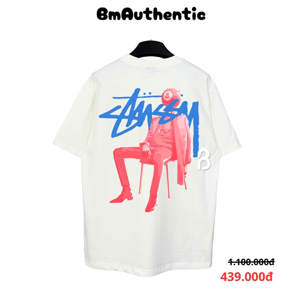 THÔNG TIN SẢN PHẨM - CHẤT LIỆU – 100% cotton cao cấp, dày dặn, mềm mịn, thoáng khí, co giãn nhẹ giúp mang lại cảm giác dễ chịu khi mặc. Vải giữ form tốt, không bai nhão, không xù lông sau nhiều lần giặt. – THIẾT KẾ – Hình in nhân vật người đàn ông ngồi ghế mặc suit màu đỏ phối logo Stussy xanh dương kèm quả bóng bi-a số 8 độc đáo. Tông màu đối lập tạo hiệu ứng thị giác mạnh mẽ, mang đậm phong cách streetwear nghệ thuật và cá tính. – KIỂU DÁNG – Form rộng Unisex chuẩn Âu, phù hợp với mọi dáng người, dễ phối cùng quần jean, short hoặc jogger, hoàn hảo cho phong cách năng động, hiện đại và tự do.