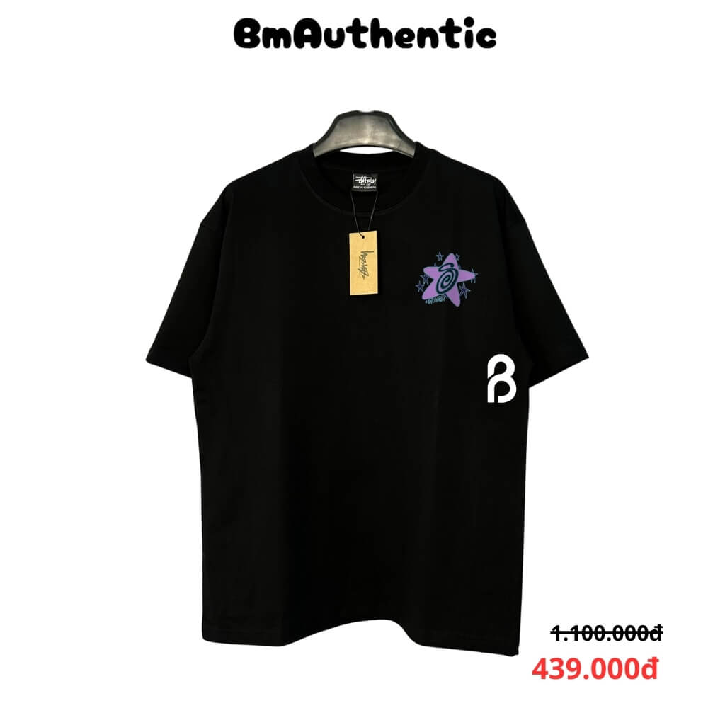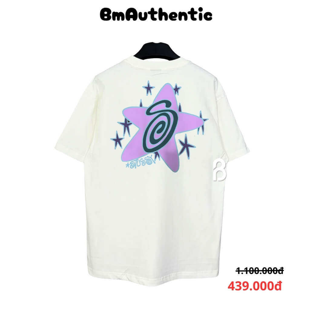 THÔNG TIN SẢN PHẨM - CHẤT LIỆU – 100% cotton cao cấp, mềm mại, thoáng mát và co giãn nhẹ. Vải dày dặn, bề mặt mịn, không xù lông, không bai nhão, giữ form cực tốt sau nhiều lần giặt. – THIẾT KẾ – Họa tiết ngôi sao lớn màu tím phối logo Stussy Spiral độc đáo, kết hợp các ngôi sao nhỏ xung quanh tạo hiệu ứng không gian sống động. Mặt trước in nhỏ tinh tế, mặt sau nổi bật, mang đậm phong cách streetwear cá tính. – KIỂU DÁNG – Form rộng Unisex thoải mái, phù hợp cho cả nam và nữ. Dễ dàng phối cùng quần jean, short hoặc layer cùng áo khoác để tạo phong cách thời trang năng động và hiện đại.