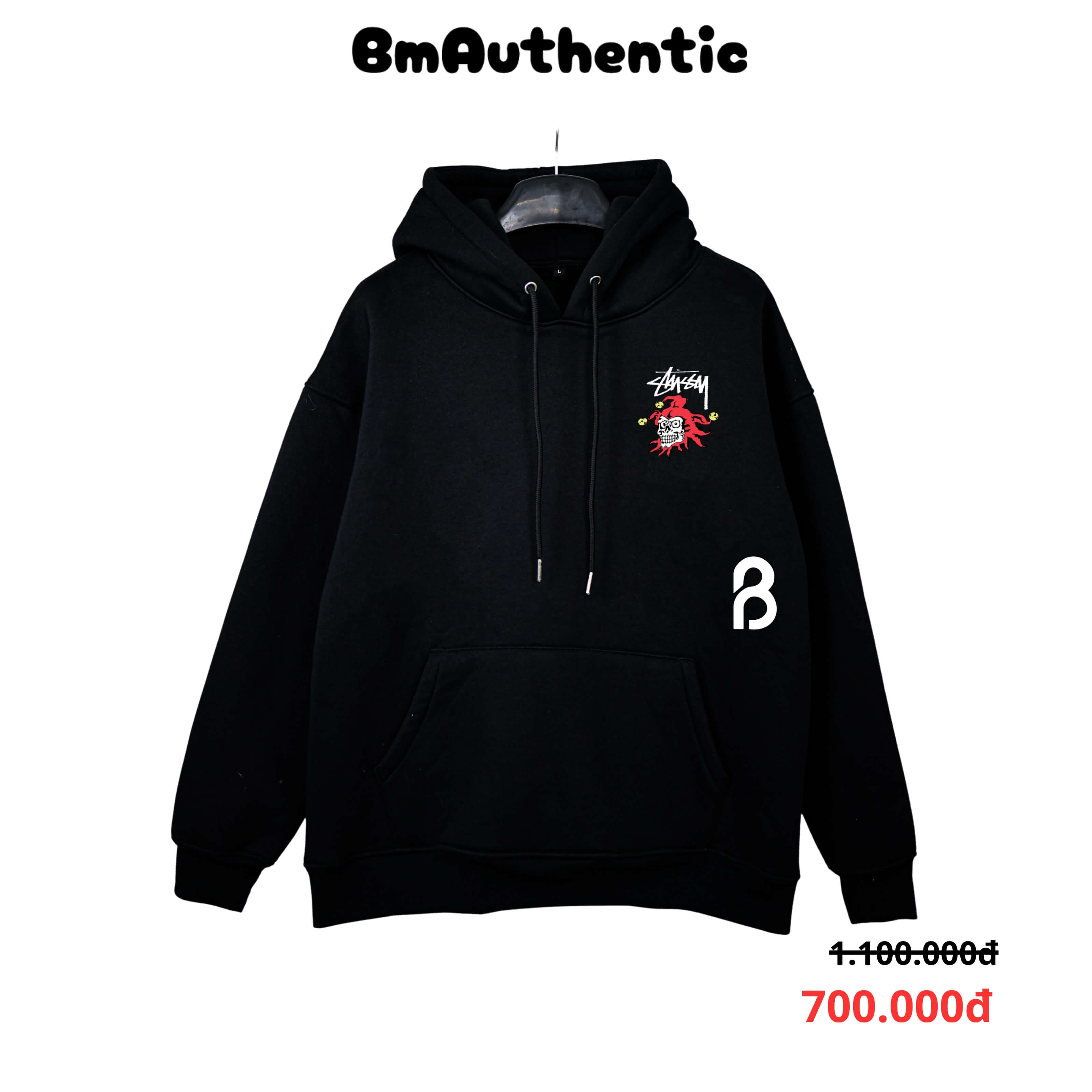 THÔNG TIN SẢN PHẨM - CHẤT LIỆU – Cotton cao cấp dày dặn, bề mặt mịn, giữ ấm tốt nhưng vẫn đảm bảo độ thoáng khí, form đứng chuẩn hoodie streetwear, mặc thoải mái hằng ngày – THIẾT KẾ – Mặt sau in graphic đầu lâu hề Joker phối đỏ – trắng nổi bật kết hợp logo Stussy handwriting sắc nét tạo điểm nhấn mạnh mẽ và cá tính, mặt trước in logo mini gọn gàng, tổng thể mang phong cách streetwear nổi loạn và khác biệt – KIỂU DÁNG – Form rộng unisex chuẩn streetwear, dễ phối đồ, phù hợp nhiều vóc dáng, mặc đẹp khi đi chơi, đi học hoặc phối layer mùa lạnh.